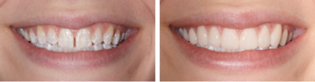 Before and after a Lumineers procedure effectively covering stubborn stains.